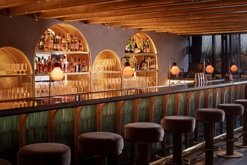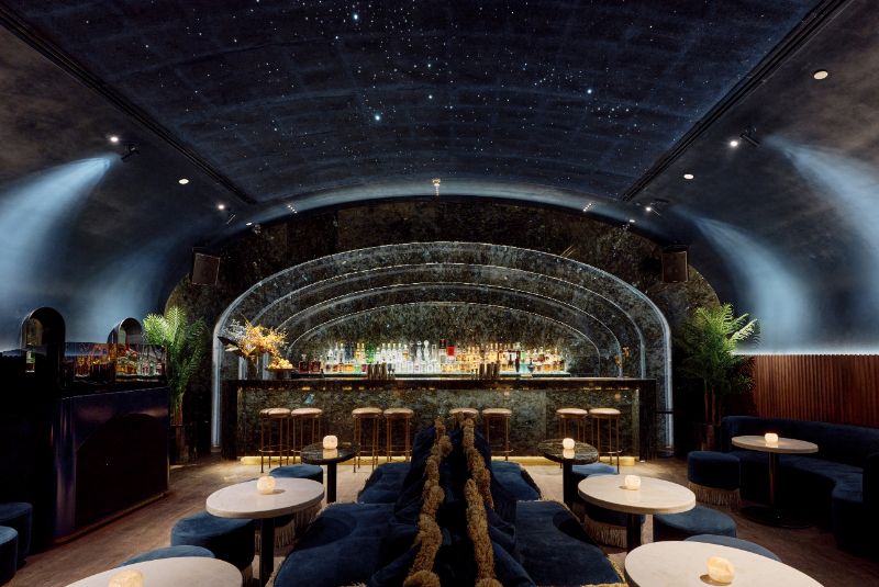 Once you navigate your way through the false-front entrance through the refrigerator door in a pastrami shop, you’re confronted with The World’s Best Bar 2022, sponsored by Perrier. Gaudi-inspired curved wood ceilings are mirrored by a sweeping bar serving outrageously innovative drinks by one of the liveliest bar teams in the business.