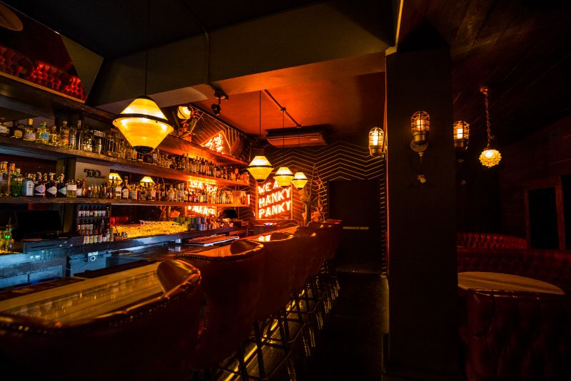 This wrap-around space with nightclub-black decor is illuminated almost exclusively by neon and gives off serious Blade Runner vibes. Visitors have come to learn that Drink Kong has some of the most forward-thinking cocktails in the city, with brilliant use of acids and hard liquor.