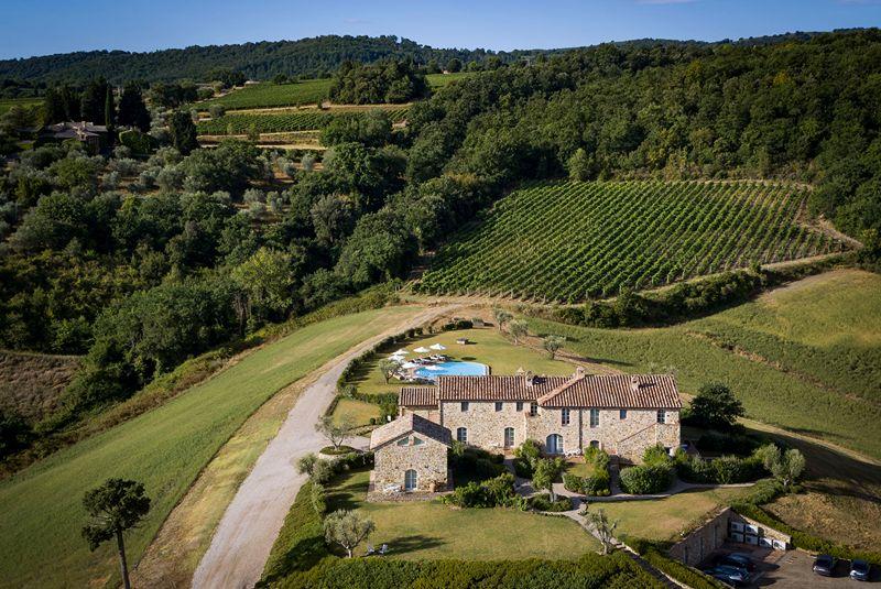 Set amongst woodland, olive groves and rolling wheat fields, Castello Banfi in Tuscany comes with an onsite hotel comprising 14 suites and a Michelin-starred restaurant.