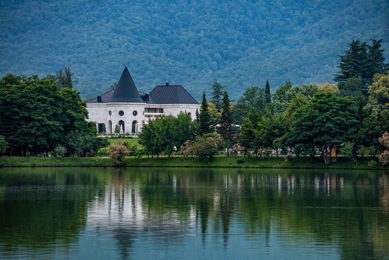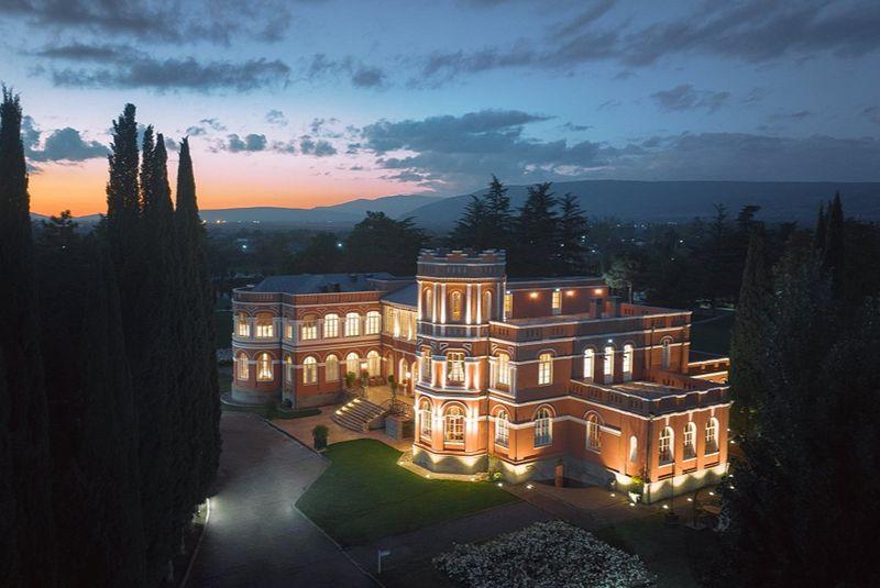 Château Mukhrani in Kartli, Georgia is a 19th-century castle with French-style grounds crafted by a gardener shipped from the Palace of Versailles and cellars housing more than 60,000 bottles of wine.