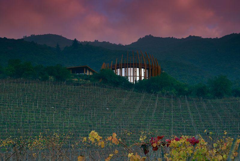 Clos Apalta in Colchagua Valley in Chile offers tours around its state-of-the-art gravitational winery coupled with stunning views over the majestic Apalta Valley. Visitors can explore the organic and biodynamic vineyards planted with some of Chile's oldest vines before heading into the winery for tastings complete with local cheeses and homemade bresaola.