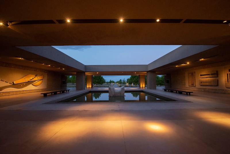 Art, wine and gastronomy are the equally weighted pillars that hold up Bodegas Salentein, located in Mendoza's Uco Valley. Each of its four wings stores and ferments its grapes before gravity leads to the cellars for ageing in oak. Tastings are also subterranean, taking place around a two-tonne limestone conference table extracted from nearby San Juan.