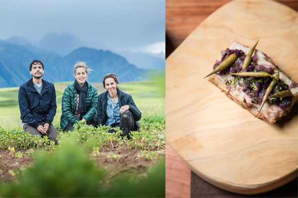 Virgilio Martínez, Pía León and Malena Martínez; a dish at Mil