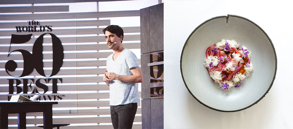 Header images: Virgilio Martínez speaking at #50BestTalks and the dish Colours of the Amazon (image: Cesar del Rio)