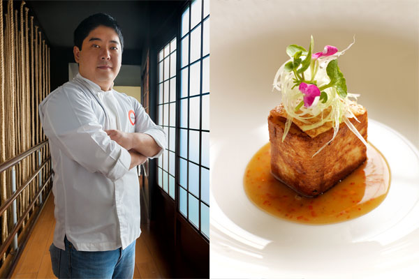 Micha Tsumura and his chancho con yuca dish at Maido in Lima