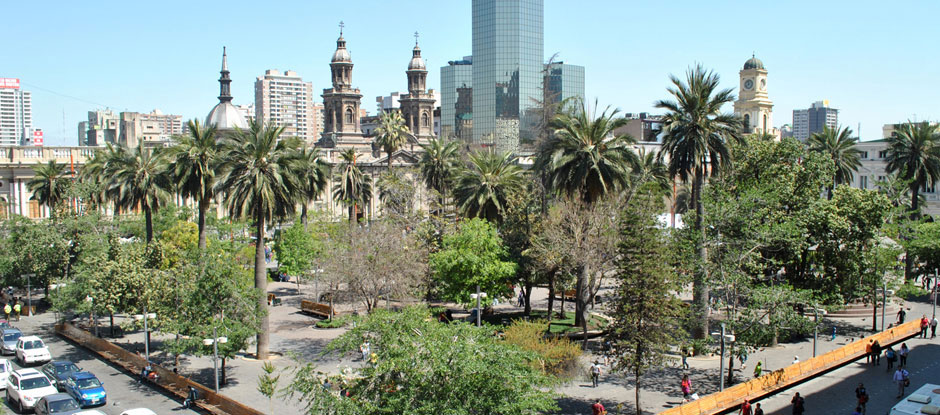 Header images: Plaza de Armas in Santiago; Patagonian lamb at Boragó restaurant; chefs Enrique Olvera, Alex Atala, Joan Roca and Gastón Acurio at Ñam festival