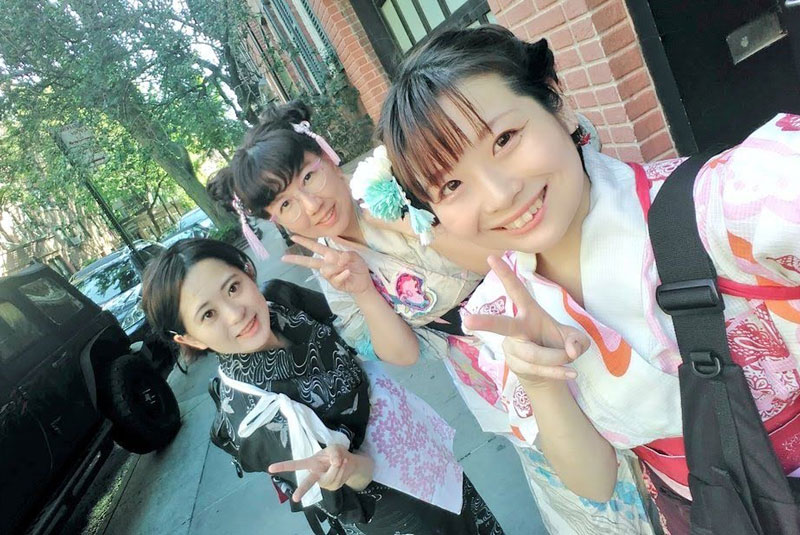 Chidui posing with her sushi chef students