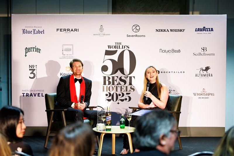 A brand-new category was introduced for 2025, the Johnnie Walker Art of Design Award, identifying a hotel that goes beyond architectural brilliance to create a multi-sensory experience for its guests. The accolade belongs to South Africa's Singita - Kruger National Park, whose director Jo Bailes (above left) discussed the importance of design with 50 Best PR & Communications Director Erica Schecter (above right).