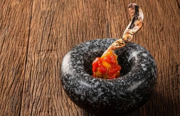 Standout dish: Kan Chu Piang (gems on crab stick) is Sorn’s version of Kan Chiang Pu (blue swimmer crab leg), arguably the most fought over part of the crab at any Thai dinner table. In the nation’s households, this part is reserved for the most senior or the most beloved of the family. At Sorn, you become that favourite child for a day. The dish is a marriage of the two most valued parts of the crab: crab roe and swimmer leg. The plump and juicy meat is served chilled and coated with crab roe paste inside a little granite mortar, which has a fiery yellow chilli sauce dip inside.