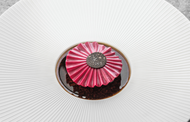 What’s on the menu? Each course reflects deep thought and meticulous execution. A tartlet of foie gras mousse with finger lime pearls and smoked maple syrup is layered with paper-thin pecan crisps – a decadent burst of texture and taste. Sea Urchin Louise with jellied oxtail, crème fraîche and chives is a delicate, yet flavour-packed homage to his young daughter. Elsewhere, trout from Schliersee, an idyllic freshwater lake near Munich, with iceberg lettuce, jalapeño, kohlrabi, horseradish, pumpernickel, dill and sauerkraut beurre blanc, evokes alpine purity.