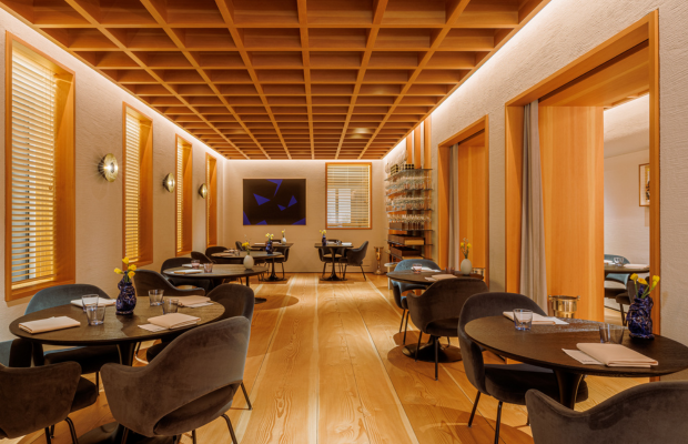 Labour of love: Minimalist, calm and warmly lit, the restaurant is adorned with artworks by South German artist Stefan Strumbel and opens directly onto Hartwig’s open-plan kitchen – also known as his “laboratory of love”. It’s a space where tradition and innovation meet, and diners can witness the culinary craftsmanship of a loyal and dedicated team.